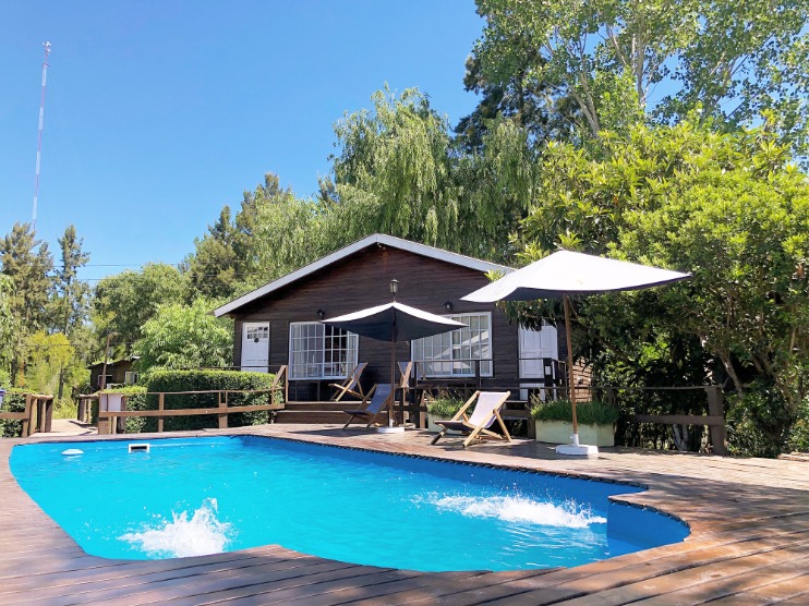 Unidades con calefacción, aire acondicionado, baño completo, Smart Tv 32", caja fuerte, heladera, cocina con vajilla completa, dispenser y bidón de agua de cortesía, sillas y mesas de exterior.