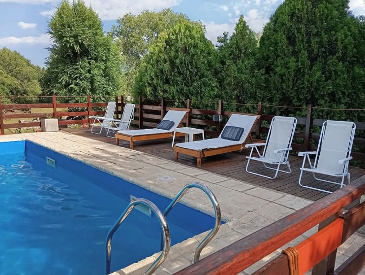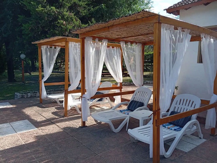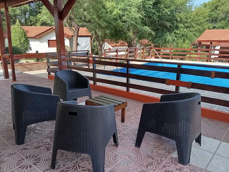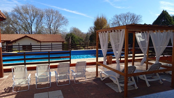 Servicios: Cocina completa, microondas, servicio de mucama, ropa blanca, calefacción, cable, LCD de 32", en el comedor y tv 21¨ en el dormitorio, ventilador de techo,baño completo, 9300 m² de parque, piscina, solarium, cabañas independientes entre sí, cochera individual y cubierta, parrilla individual, seguridad, vista a las Sierras Chicas y Cerro Champaquí.